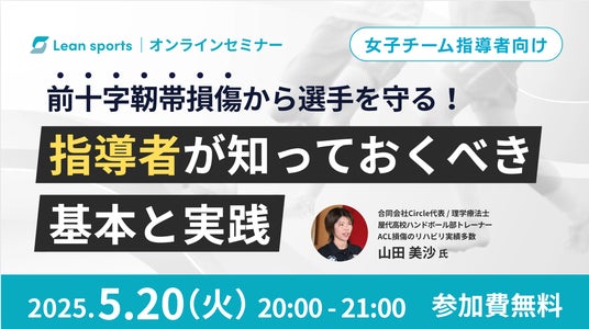 株式会社LEAN(本社:東京都、代表取締役:立道友緯)は、女子アスリートに多く発生する「前十字靭帯損傷(ACL)」について、基礎知識と予防策を学べる指導者向け無料ウェビナーを2025年5月20日(火)に初開催いたします。