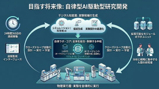 QueeenBは、ロボティクスやLabOS、Agentなどを通じて、研究開発現場における自律型AIラボの実装を目指しています。ウェット実験における前処理や搬送など、人手依存が大きく、長いプロトコルや反復作業が発生しやすい工程を対象に、既存機器を装置つなげる統合制御LabOS、ロボットによる実作業の代替を組み合わせることで、研究現場全体の自動化を支援しています。これにより、実験の再現性向上、処理能力の向上、24時間稼働、安全性の向上に加え、研究者自身が手作業から解放され、仮説立案や解析など本来注力すべき業務に集中しやすい環境づくりを後押しします。