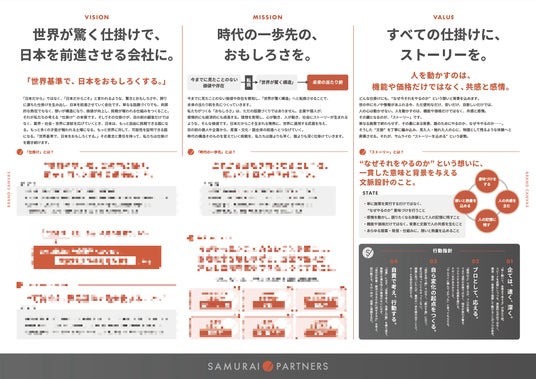 株式会社サムライパートナーズ 新経営理念をまとめたデザイン”ブランドキャンバス”(一部社外秘のためボカシ有り)
