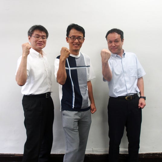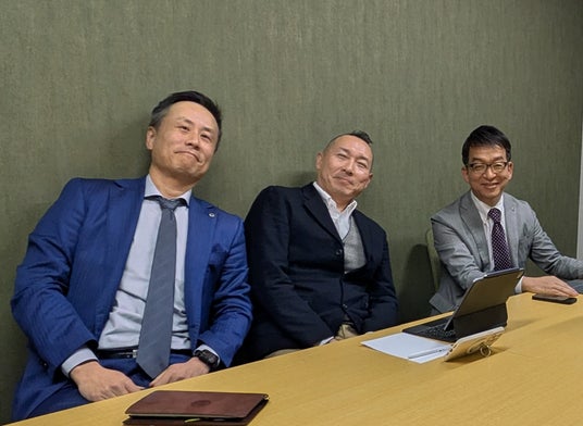 (左) 社長室担当課長 芝村受長氏 (中) 代表取締役社長 和田貴志氏 (右) 社長室担当課長 中西隆徳氏
