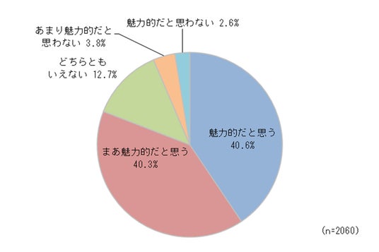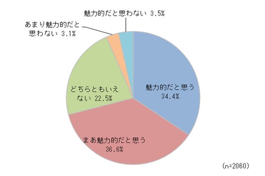 「あなたはマイカーを持っている異性についてどの程度魅力的だと思いますか?」というアンケートに対する結果。(n=2060)
