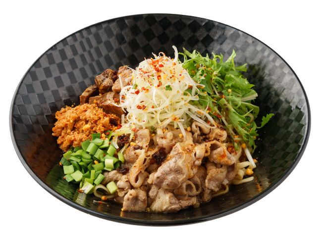 汁なし麻辣面に牛バラの焼き肉を豪快にトッピング!