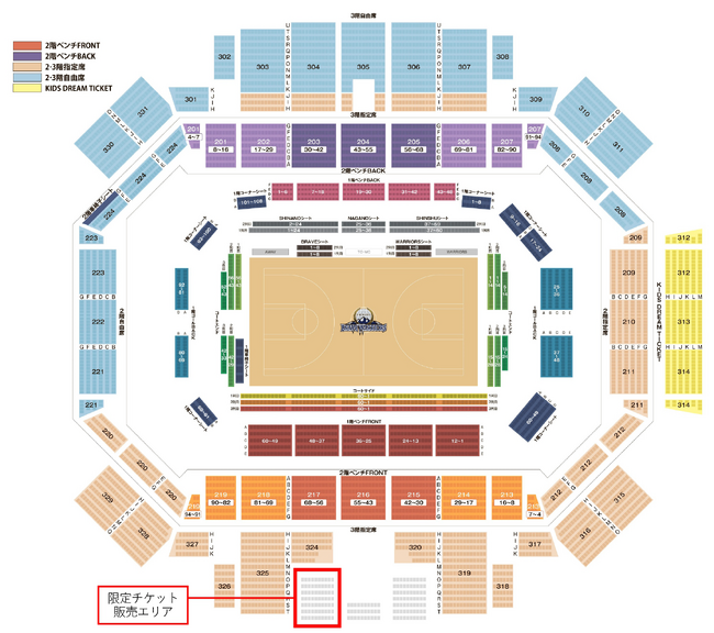 取扱い:Bリーグチケットのみ。「エリア指定席」として販売いたします。