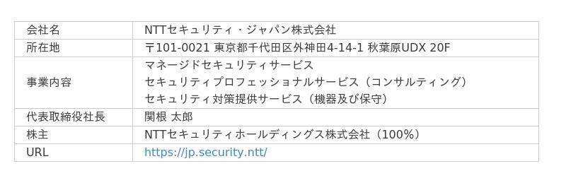 NTTセキュリティ・ジャパンは、NTT グループのセキュリティに関わる高度な人財と研究開発成果、そして20余年以上にわたるサイバー脅威との戦いで磨き続けてきた独自のサイバーインテリジェンスと脅威検知・対応能力を結集した、サイバーセキュリティ専門事業者です。リスク予測から診断、防御、脅威検知、インシデント対応、復旧まで一貫した「プロアクティブサイバーディフェンスサービス」の提供により、お客様・社会を守り、安心・安全なデジタル社会の実現に貢献します。