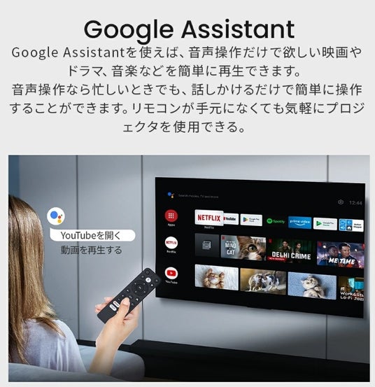 ● Google アシスタント対応: リモコンに話しかけるだけで、番組検索や音量調整、電源のオン/オフなどをおこなえます。