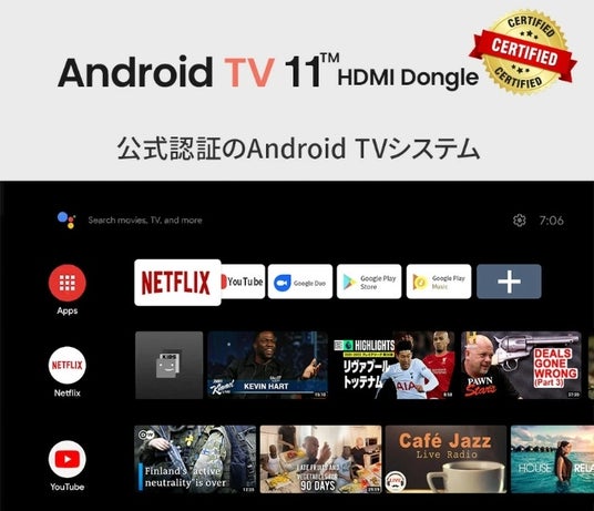● Android TV 11.0 搭載: Netflix や YouTube をはじめとする 9000 以上のアプリを内蔵。お好みのコンテンツをたっぷりとお楽しみいただけます。