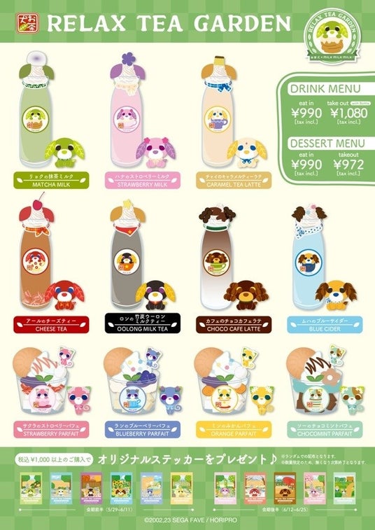濃厚な北海道産ミルクをベースにしたドリンクとフードを提供する「MILK MILK MILK!」から、お茶犬・お茶猫全11キャラクターから着想を得た、特別なドリンクとパフェが発売されます。