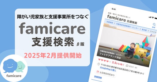 「疾患・障がい児家族の毎日を楽しく!」を目指すファミケア(運営:株式会社NEWSTA、東京都渋谷区、代表:鈴木碩子)は、障がい児家族と支援事業者(児童発達支援・放課後等デイサービス・短期入所・訪問看護・訪問介護等)をつなぐマッチングサービス「ファミケア支援検索 β版」の提供を開始いたします。