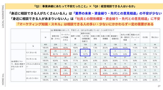 「Q2:事業承継にあたって不安だったこと」×「Q8:経営相談できる人はいるか」クロス分析