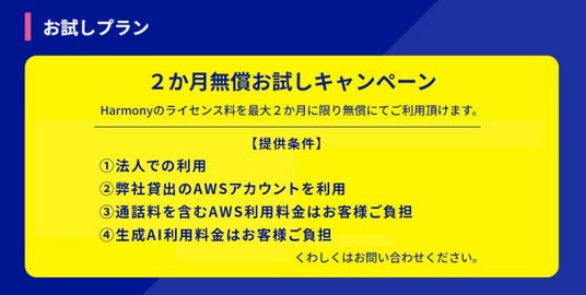 2か月無償お試しキャンペーンを実施しています。詳細や条件は当社までお問い合わせください。
