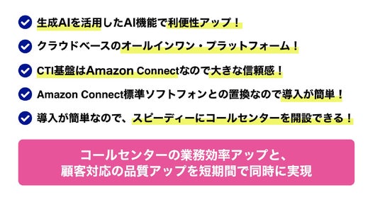 最新機能の追加により、コールセンター業務の生産性向上と品質の標準化を同時に実現します。
