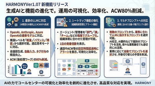 ロジカル・アーツ株式会社(以下、ロジカル・アーツ、本社:大阪府大阪市、代表取締役:城垣 光宏)は、2026年4月1日に、AIコンタクトセンター『HARMONY Ver1.07』をリリースしました。