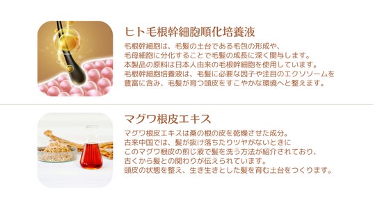 毛髪に必要な因子を豊富に含む 『ヒト毛根幹細胞順化培養液』を高配合し