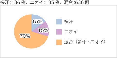 ミラドライ治療を行った方のなかで多い悩みは、多汗・ニオイの混合症状です。