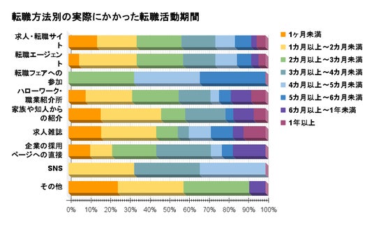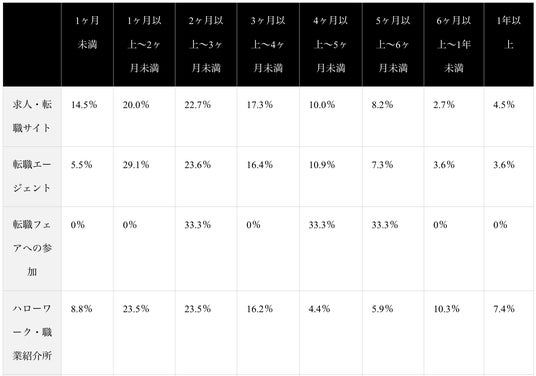 - 転職方法別の転職活動期間