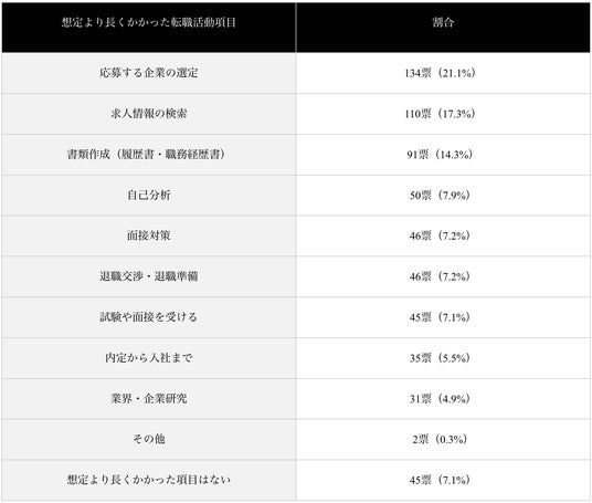 - 想定より長くかかった転職活動項目