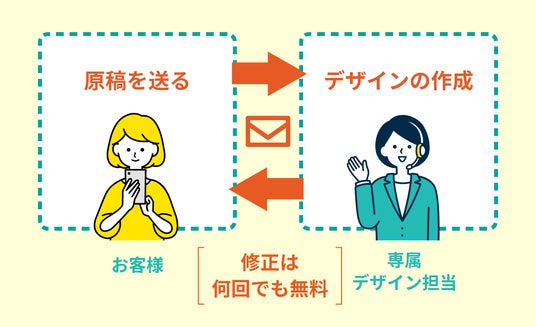 「オリジナルプリントグッズを作りたいけど、デザインが難しい」という理由で諦めることが無いよう、クラティージャパンが全力でサポートします。すべてのお客様にオリジナルプリントウェアを楽しんでいただきたいという思いから、デザインが無い場合や手描きのイメージ段階でも、担当者がお客様のご希望やご利用シーン・用途に合わせてデザインを提案し、作成まですべて無料で行います。AI画像生成サービスで作成した画像の修正も可能です。修正は何度でも無料で承りますので、どのような些細なことでも、何なりとお申し付けください。