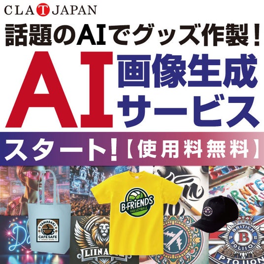 株式会社フォーカス(本社:山梨県甲斐市、代表取締役:常松 憲太)が運営するオリジナルグッズ制作サイト「CLAT-JAPAN(読み:クラティージャパン)以下、クラティージャパンにおいて、「AI画像生成」サービスがスタートしました。テキストを入力して気軽にデザインを生成できるため、オリジナルグッズ製作では必須のデザイン作成を「誰もがいつでも簡単に」楽しめるようになりました。今回は、「AI画像生成サービス」を活用してオリジナルウェアを製作する方法をご紹介します。なお、使用料金は一切かかりません。この機会に是非お役立てください。