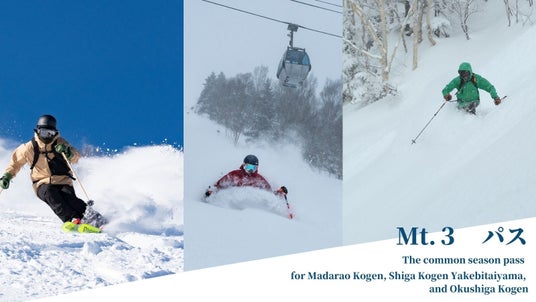 2024-25シーズンから、新たに「<Mt.3パス>斑尾高原・焼額山・奥志賀高原 共通シーズン券」を導入し、従来より約1ヶ月長くシーズンをお楽しみいただけます。