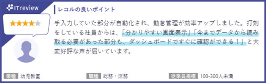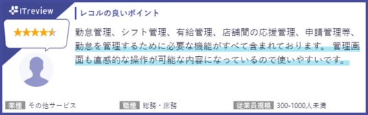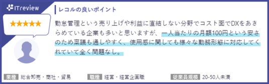 <ITreviewに寄せられた「レコル」へのお客様の声>