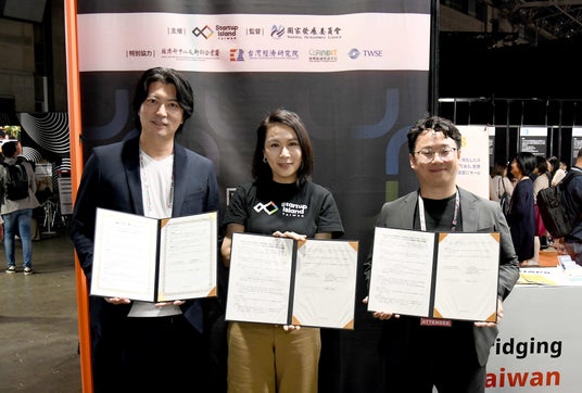 左から、同時にMOUを締結した高木ビル代表 高木秀邦氏、同氏はJCCOにおいても理事を務める。Startup Island TAIWANのマネージングディレクター AMANDA LIU氏。JCCO代表理事 青木雄太。
