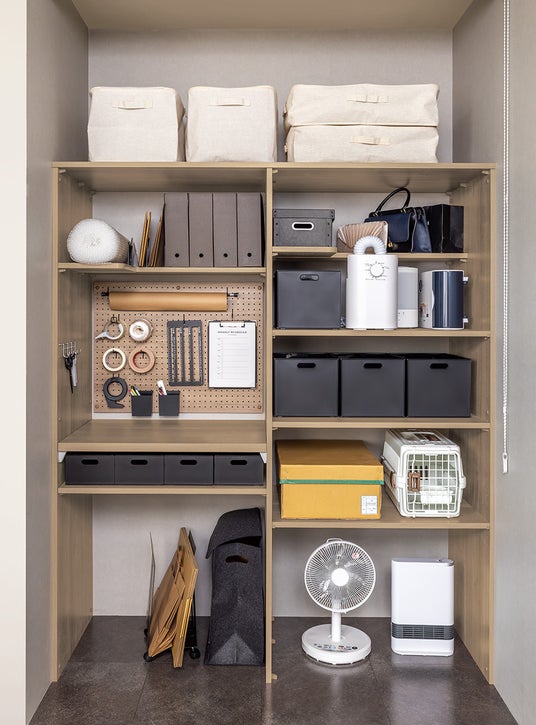 一般的な住宅には、ホールや廊下の動線上に2~3畳ほどの「物置/納戸スペース」を設置するケースがあり、その空間は、自由に活用できるように棚や仕切りがない空きスペースとなることが多くあります。