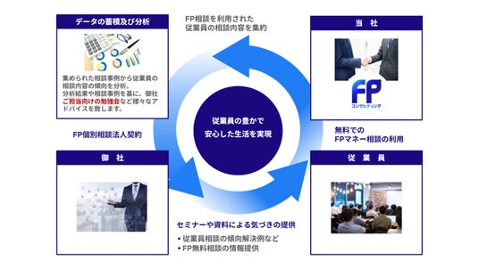 従業員の皆さまの家計や資産形成のお悩みを、プロのFP(ファイナンシャルプランナー)と一緒に問題解決にまで導くサービスです。従業員の皆さまは無料で相談サービスをご利用いただけます。