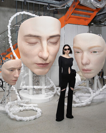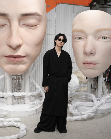 店内で新たな世界観を反映した3体の「ジャイアントヘッド・キネティック・オブジェ」は深い思索にふけるような表情、やわらかくまばたきするまぶた、互いを意識しあうような目の動きは、人間の思考や感情、人と人との関係性、自己の内面への探求を凝縮している。