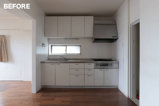 I型キッチンを切断し、L型に変更。