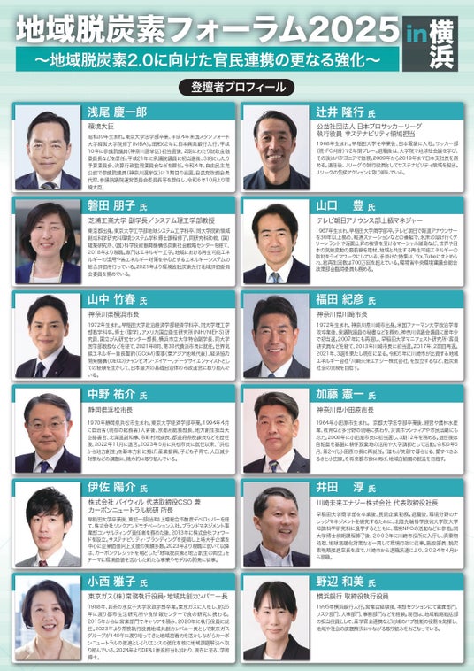 本フォーラムでは、地域脱炭素に精力的に取り組む自治体や事業者、金融機関、学識者等による議論を通じて、「産官学金労言」など多様な主体を巻き込んだ地域脱炭素のムーブメントにつなげることを目指しています。