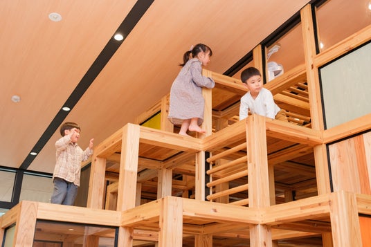 子どもたちの笑顔はじける屋内遊び場「キノパーク」。遊具や内装にはヒノキやスギ等の木材をふんだんに使用しています。木の香りや触れたときの感覚等、遊びの中で五感が刺激されることで、お子さまの感性や創造性が育まれます。キノパークでできる主な遊び