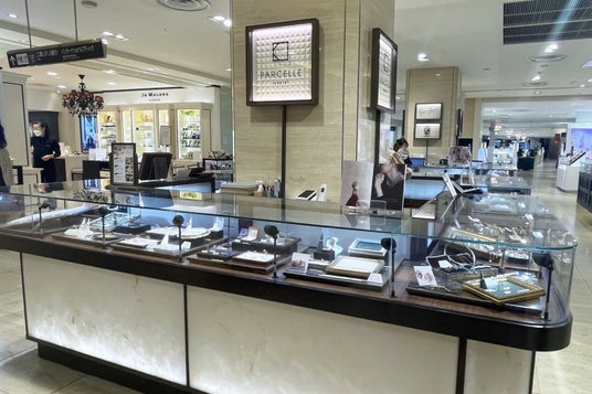 パーセルジュエリーなんば店(大阪高島屋1階)は、開店以来何度か場所を変え、現在の広々としたスペースに落ち着きました。