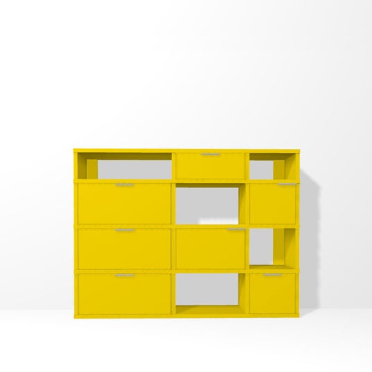 また、同一の横列内で「扉収納」と「引出収納」を組み合わせることも可能となり、さらに自由度の高いレイアウトで、スペースや用途に応じて、理想の収納家具をおつくりいただけます。