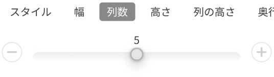 そのほか、操作性の見直しとして、従来はバーをスライドさせて設定していた列数や幅の調整に「+」「-」ボタンを設置。これにより、より細かな数値の指定がしやすくなりました。