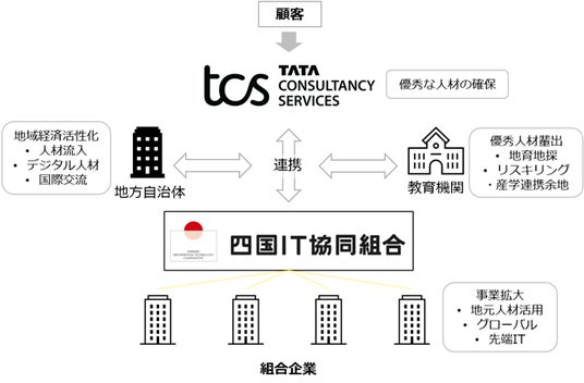 日本TCSは、愛媛県下の自治体や、四国IT協同組合、大学とも連携体制を構築し、日本TCSが擁する専門人材やITやデジタル技術の知見を活用しながら、地方自治体における都市部への人材の流出、大学における学生の減少、愛媛県および松山市における雇用創出や企業の事業拡大といった課題の解決に取り組みます。
