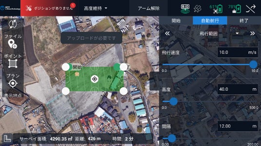 日本語対応したAuterion Mission Controlを採用しており、日本人に分かりやすいUI表記。プロポ(送信機)上でミッション作成まで完結可能となっており、現場での飛行プラン設計が容易であるとともに、離着陸やキャリブレーション飛行の自動化機能を実装し、オペレーターの負担を軽減。加えて、誤操作防止を取り入れた安全な操作性を実現。