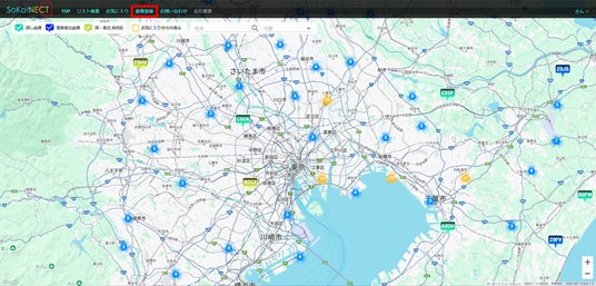 ユーザー様がお持ちの倉庫情報をSOKONNECTを通じて全国へ情報を発信することができます。