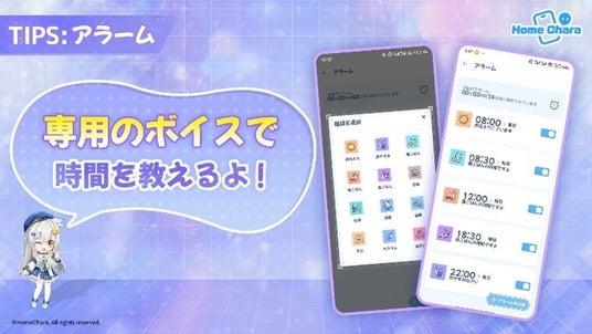 キャラは、日常生活をサポートする機能として、天気予報、カレンダーなど、皆さんが普段から利用している便利な機能と連動ができるようになっており、その機能に応じた専用ボイスで案内をしてくれます。