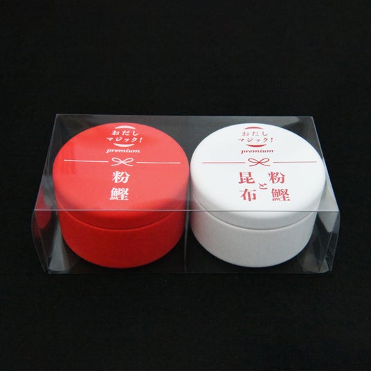 「おだしマジック!(R)️プレミアムセットアクリルケース」各30g 9,180円(税込)持ち運びしやすいコンパクトサイズ、クリアな透明感が美しいアクリルケース入りプレミアムセットは、現時点では和蔵場~Wakuraba~限定販売品です。