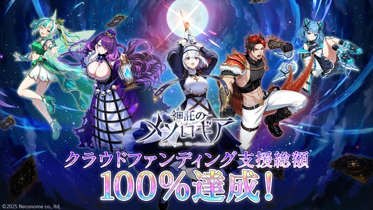 『神託のメソロギア』のクラウドファンディングプロジェクトが、目標金額100%を突破。この盛り上がりを受け、開発チーム一同から感謝の気持ちを込めて、『メソロギア』にて記念キャンペーンを企画いたしました。