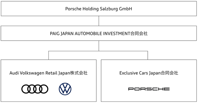 PAIGは2019年1月にVJS、2020年4月にAJSの事業をそれぞれVolkswagen Group Japan株式会社から譲り受け、さらに2022年4月よりPorscheの販売を行う新会社Exclusive Cars Japan合同会社を設立しました。