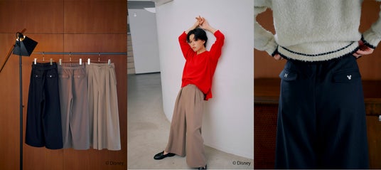 この度、世界中から愛されるキャラクター、ミッキーマウスをデイリーウェアに落とし込んだ初の限定コレクションを発売します。小柄女性にぴったりなサイジングはそのままに、さりげないロゴやワンポイントをあしらったカーディガンとパンツ、ミッキーマウスのシルエットが愛らしいトートバッグの3アイテムをご用意しました。