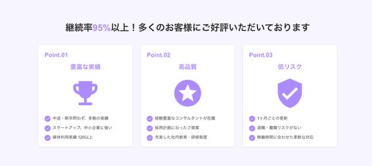 今までの採用代行でも設計~運用までの業務を行い高い評価を獲得していますが、主な提供価値は「マンパワーの補填」です。