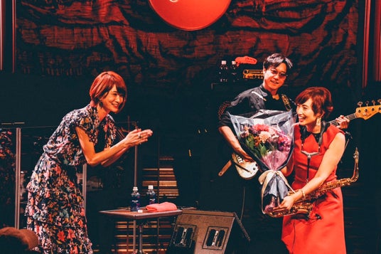 共演メンバーのギター・ZENTA、ピアノ・朝香智子、ベース・目黒郁也、ドラム・遠藤勝彦が、それぞれの音を絶妙に重ね合い、会場全体に一体感が広がりました。