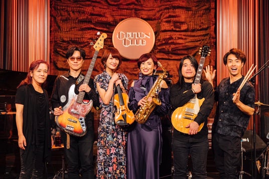 左からピアノ・朝香智子、ベース・目黒郁也、バイオリン・Ayasa、サックス・中村有里、ギター・ZENTA、ドラム・遠藤勝彦