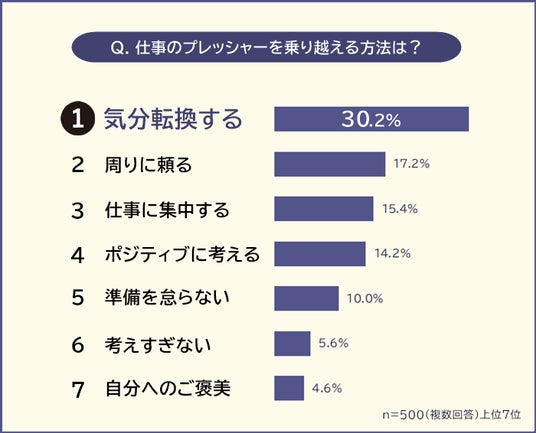 ・仕事のプレッシャーを乗り越える方法1位は「気分転換する」