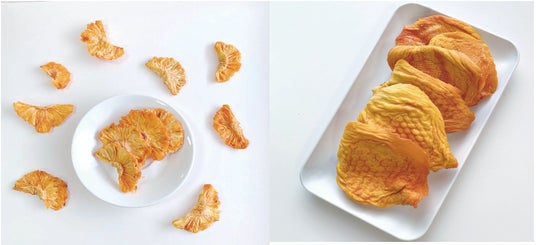 Sunnygogoの無添加ドライパイナップル(左)と無添加ドライマンゴー(右)