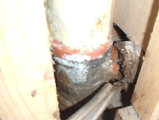 昭和40年代半ばまで主流だった亜鉛めっき鋼管は、経年劣化により内部から腐食が進行します。特に全住戸の排水が流れる共用排水立管(縦管)は負荷が大きく、漏水リスクが急増します。