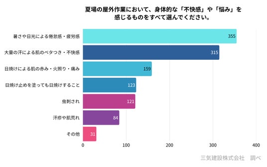 夏場は「日焼けによる倦怠感・疲労感」が1位、僅差で「汗による肌のベタつき・不快感」が2位となりました。
