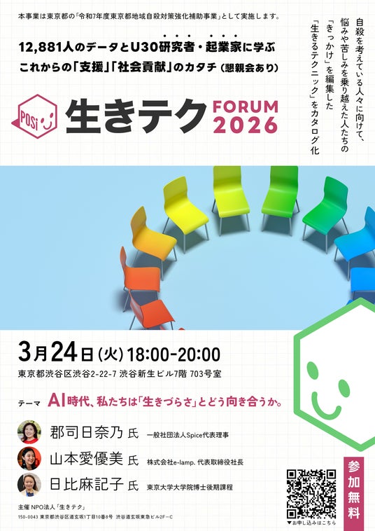 NPO法人生きテク(所在地:東京都、代表理事:オキタリュウイチ)は、2026年3月24日(火)に「生きテク・フォーラム2026」を開催いたします。
